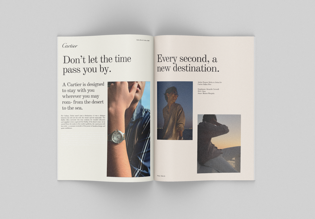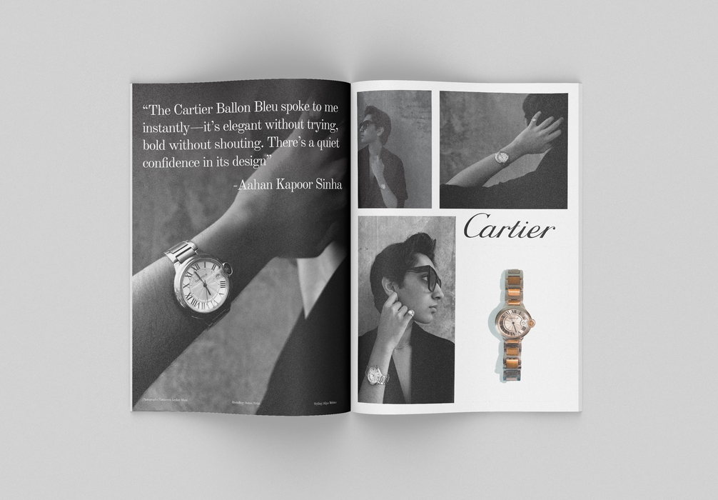 This lookbook showcases the Ballon Bleu de Cartier, a watch known for its minimal design, refined curves, and signature sapphire crown. The concept centers around presenting the watch in a clean, understated visual language that reflects Cartier’s focus on timeless luxury. All photography and modeling were done by me, allowing me to have full creative control over composition, lighting, and styling.